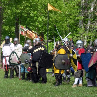 Announcements: MidRealm & East Kingdom are allies this year. MidRealm, East Kingdom, & Allies use purple tape. Aethelmearc, Atlantia, & Allies use green tape. Known World Auction and Gala Held on August 7. Photos and descriptions available on http://knowneworldauction.org Beowulf, The Road Show Held at 8pm on August 7 in the MidRealm Battlefield Pavilion. Last 60% of the epic will be performed by many bards. Listen to episode #22 for more info. Blood drive Held on August 3 and August 6 from 10am to 4pm at the Zion Baptist Church. Register to donate by searching for zip code 16057 on http://www.givelife.org Check your SCA registration card's expiration date. Bridge construction The Currie Rd. bridge undergoing construction. Might not be done before Pennsic. Check pennsicwar.org for alternate driving directions. Main Feature: Interview with Duncan Burns, a.k. Duncan The Monster, about the Combat Camera Corps project for Pennsic 41. Related Links: Knowne World A&S Auction and Gala: http://www.knowneworldauction.org Donate Blood: http://www.givelife.org (search for zip 16057) Alternate Driving Directions: https://www.cooperslake.com/home/detourDirections.php Combat Camera Corps Funding Campaign: http://www.indiegogo.com/PennsicCameraCorps?a=271475 Combat Camera Corps Facebook Group: http://www.facebook.com/PennsicCombatCameraCorp Combat Camera Corps Video on Vimeo: https://vimeo.com/combatcameracorps Combat Camera Corps Video on YouTube: http://www.youtube.com/user/SgtMonster?feature=mhee
